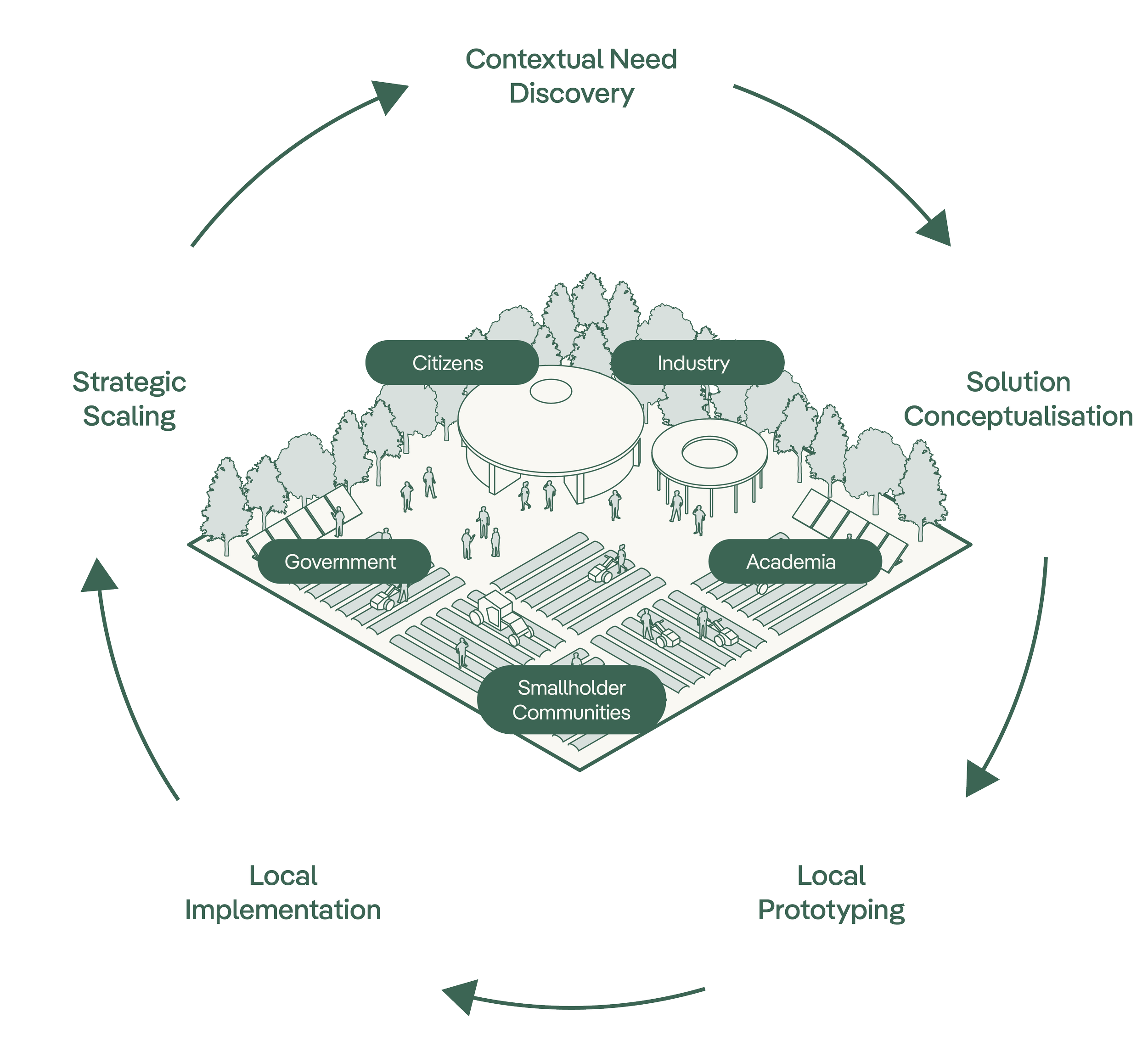 Farmhub’s serve as the local node where farmers can access information, training, equipment, digital applications, inputs and resources to improve their productivity, profitability, and resilience. By establishing a network of interconnected Farmhub’s, farmers can learn from each other's experiences and best practices, access market information, and leverage their collective bargaining power – all enabling wider systemic impact.